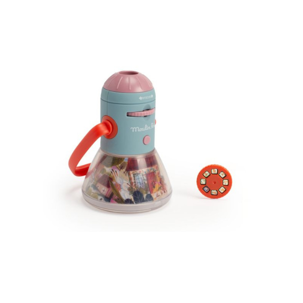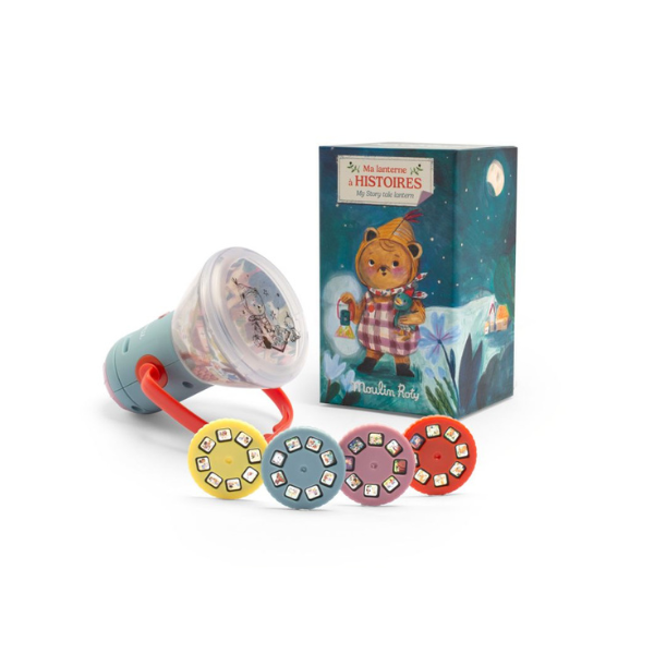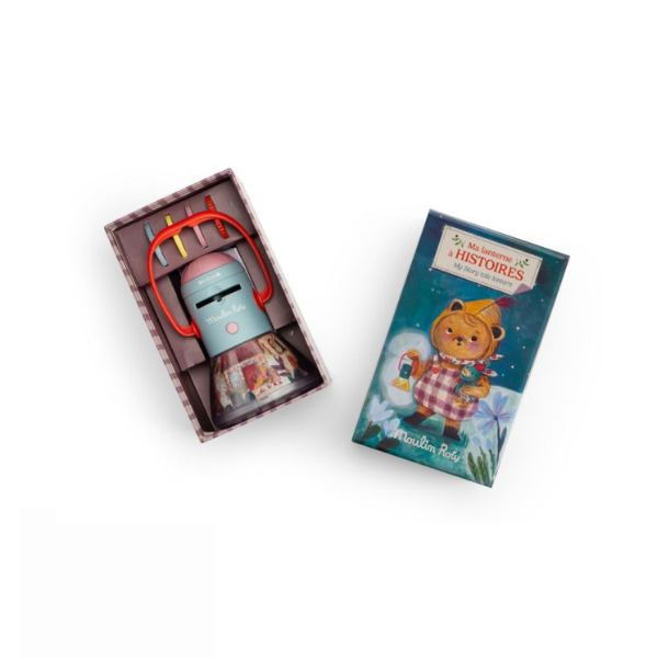 Découvrez la lanterne 3-en-1 à la fois projecteur d’histoires, d’ombres et veilleuse. 32 images à projeter pour développer l’imaginaire et se raconter de jolies histoires autour de l’univers des Minouchkas. La fonction veilleuse s’éteint après 15 min.